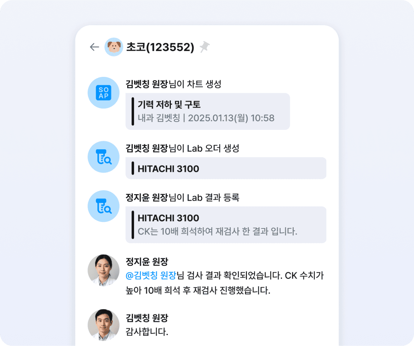 병원의 모든 소통과 업무가 플러스벳 위에서 하나로 이어져요.