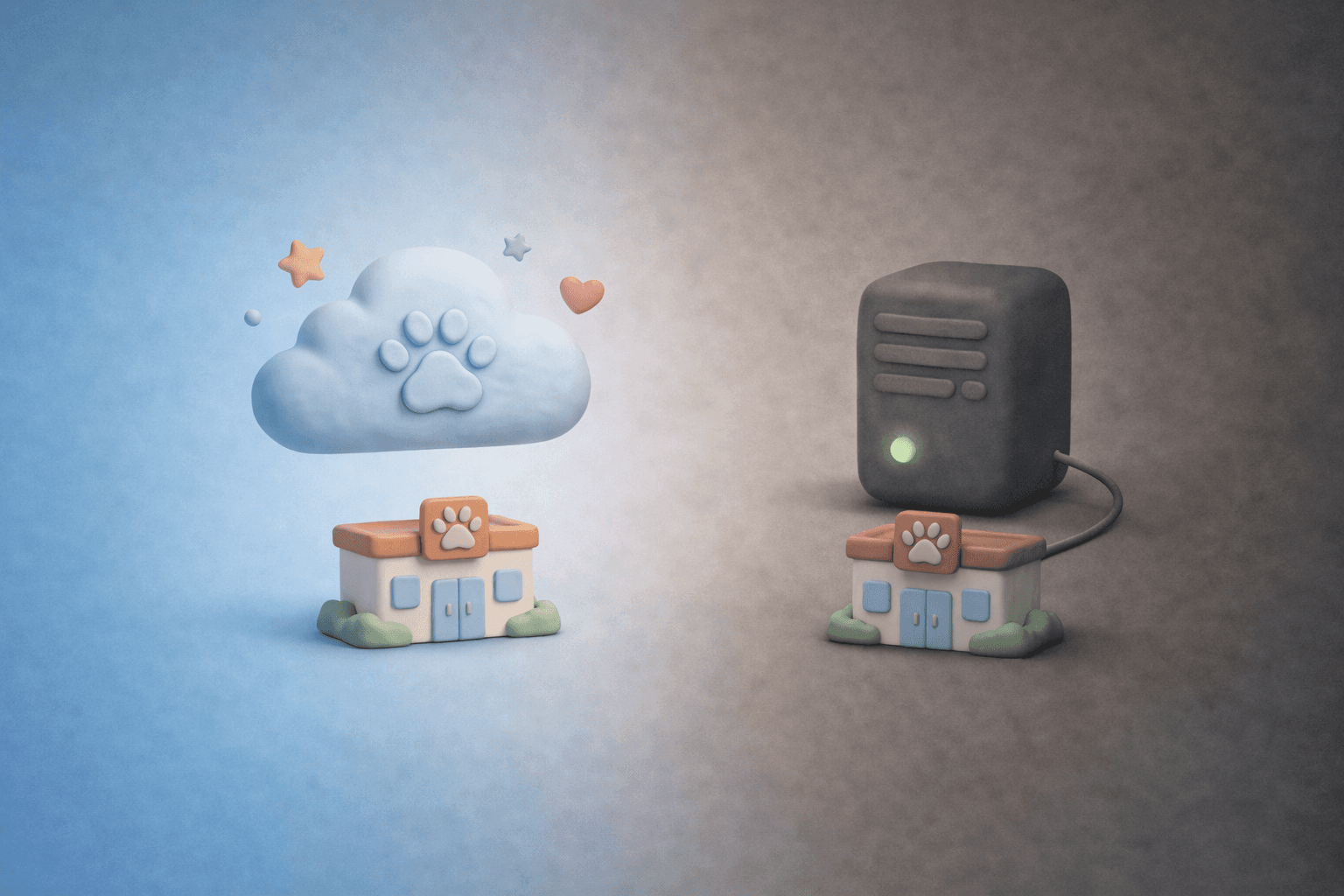 동물병원을 개원하시거나 차트를 교체하려고 알아보다 보면, 크게 두 가지 방식으로 나뉜다는 걸 알게 됩니다. 동물병원 내부에 서버를 두는 방식과, 클라우드 기반으로 운영되는 방식. 이 차이가 실제 진료 현장에서 어떤 의미인지 정리해봤습니다.