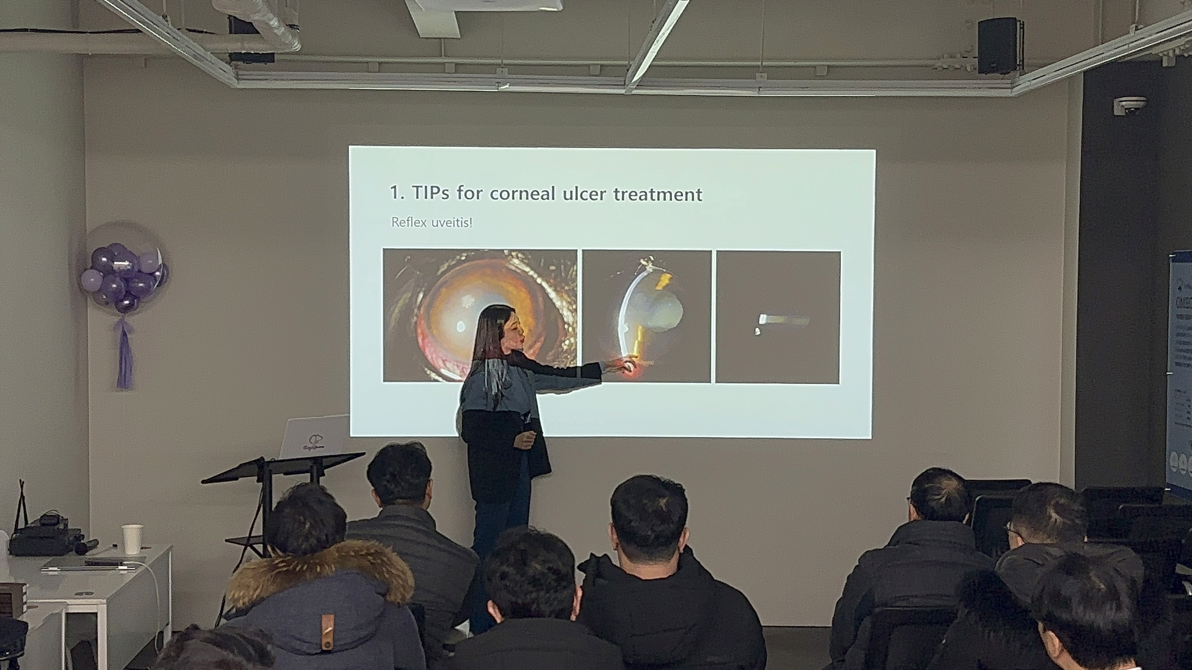 지난 2월 13일, 플러스벳 CSO(최고영업책임자) 김보윤 이사님이 광주시 수의사회 분회발표에 참여했어요. 비엔동물의료센터 안과/치과센터장이기도 한 김보윤 이사님은 이날 ‘임상증상을 바탕으로 풀어나가는 안과진료’를 주제로 발표를 진행했고, 실제 임상에서 바로 적용해볼 수 있는 내용들로 참석하신 원장님들의 좋은 반응을 얻었습니다.