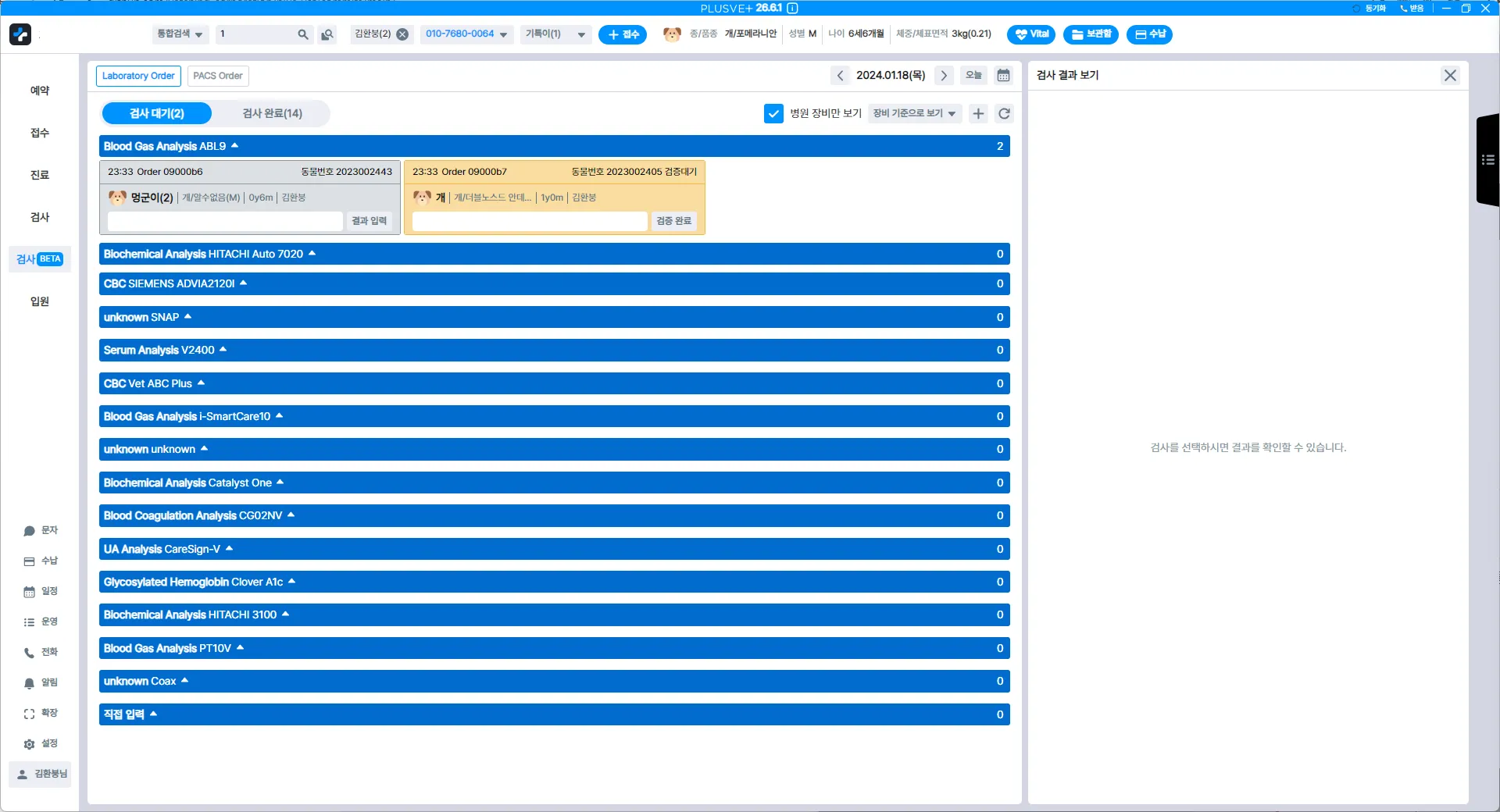 검사장비에서 오는 실검사 항목과 플러스벳에서 생성된 미검사 항목을 명확히 구분하여 수정할 수 있어요.