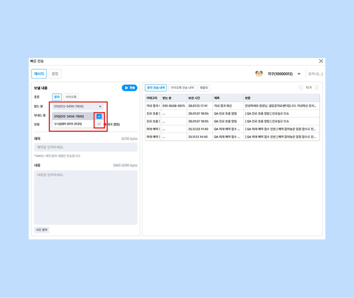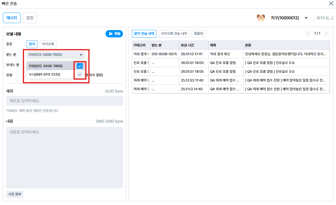 전송대상 복수 전화번호 선택 편의성 향상