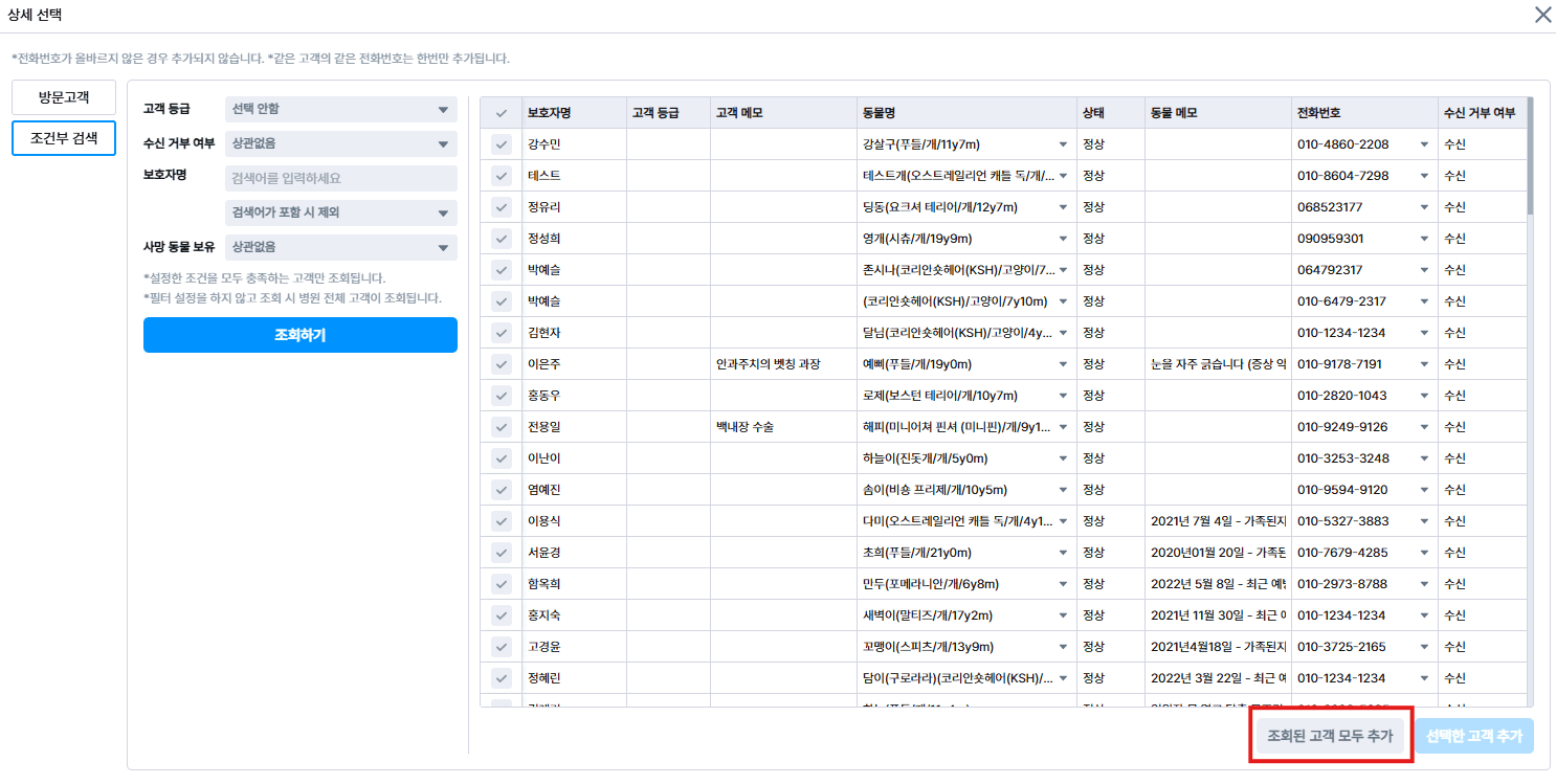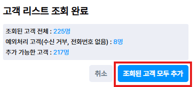 조회된 고객 모두 추가 기능 신설