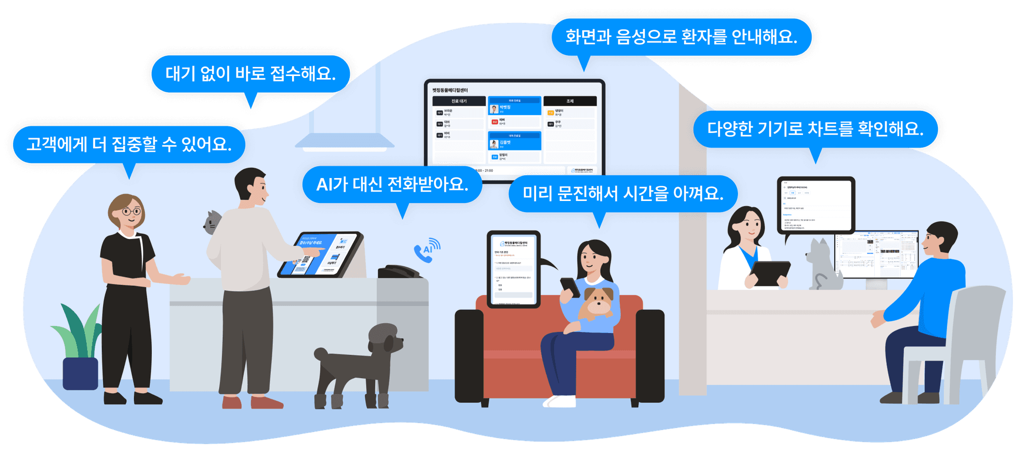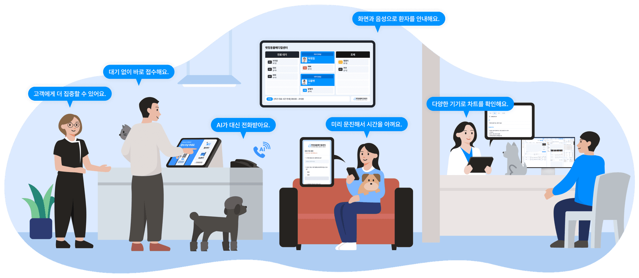수의사 및 스태프들이 더 효율적으로 일할 수 있게 도와주었습니다.